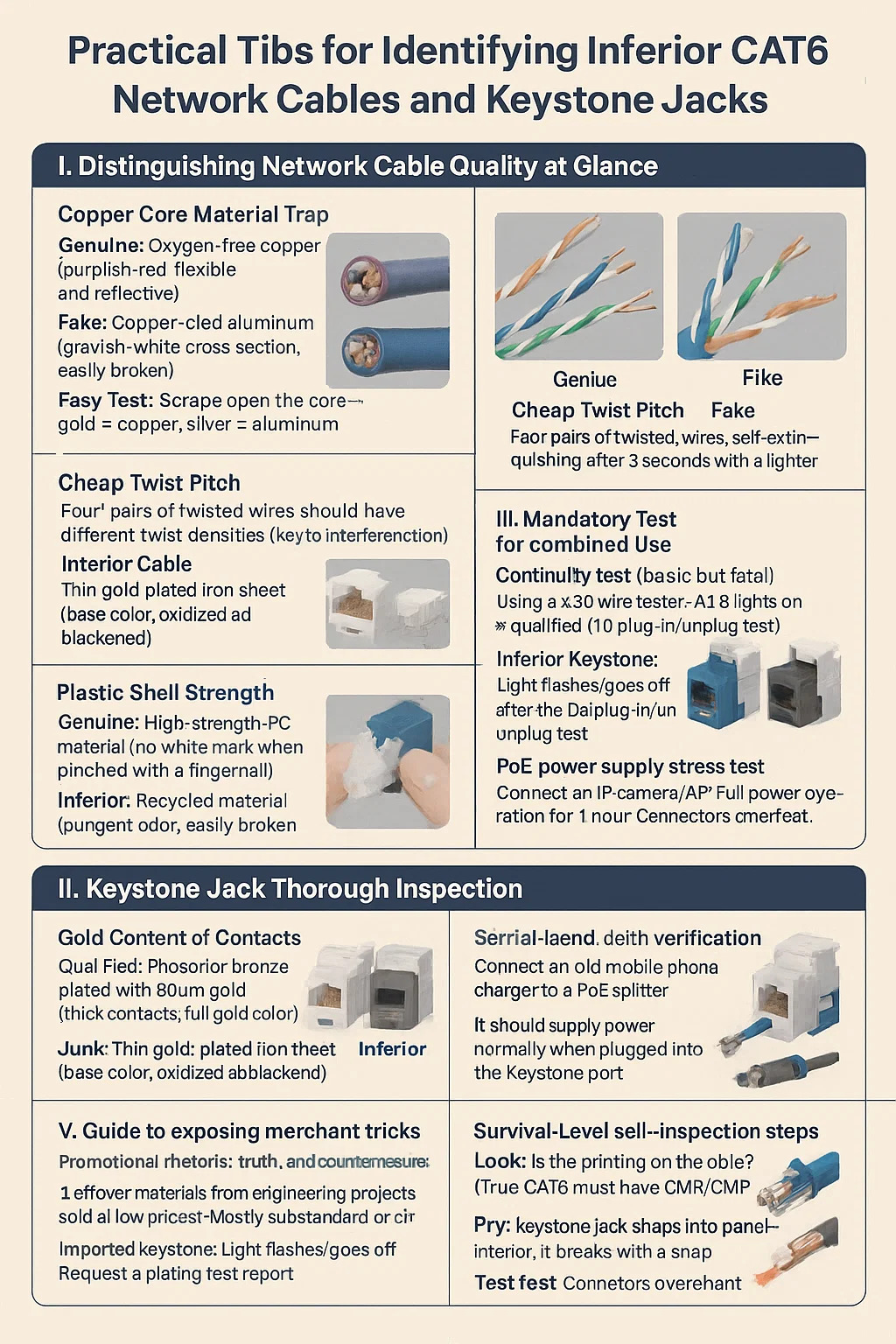 نصائح عملية لتحديد كابلات شبكة CAT6 الرديئة ومقابس Keystone
