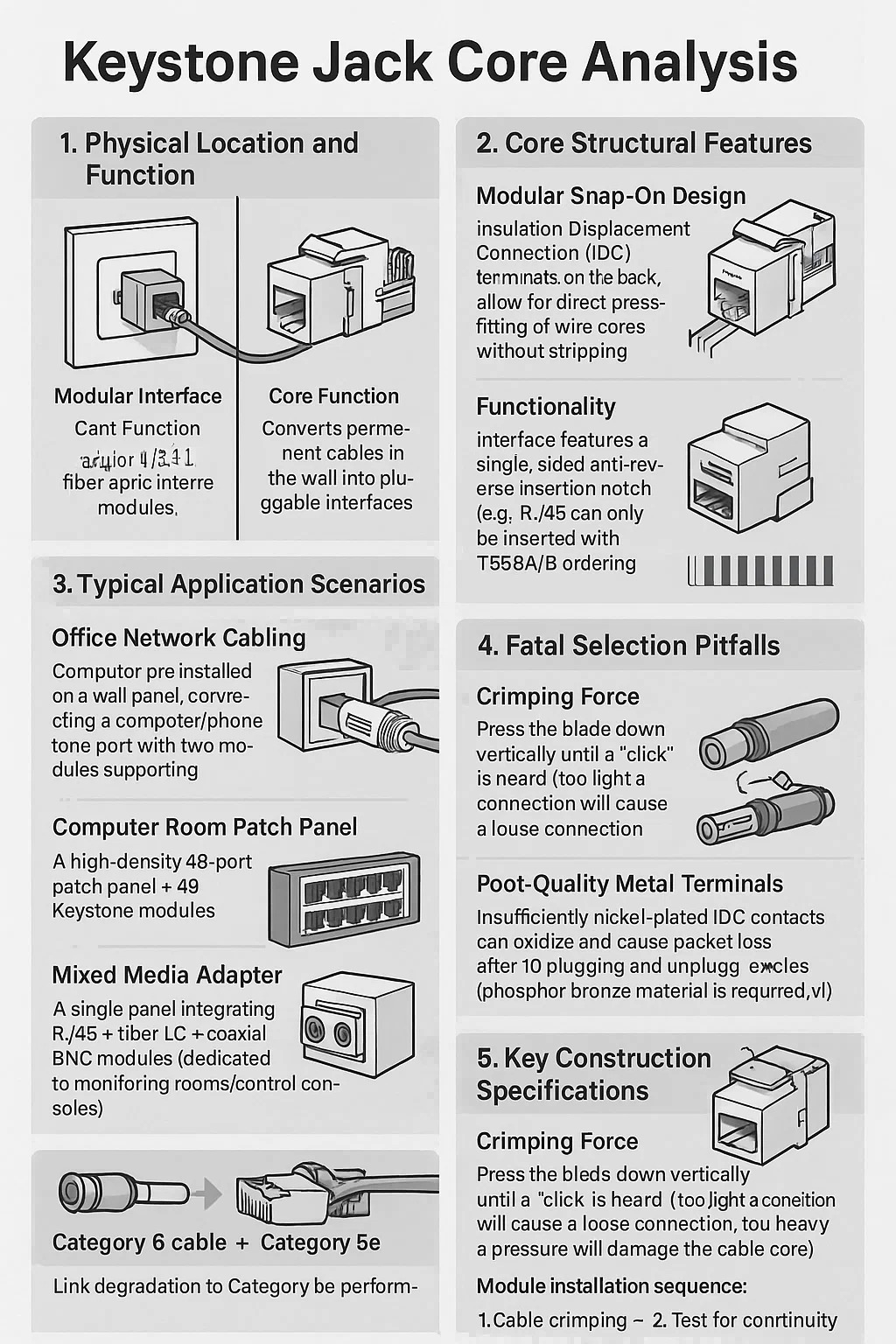 عدم تطابق عرض النطاق الترددي: كبل الفئة 6 الفئة 5e Keystone → تدهور الارتباط بأداء الفئة 5e.