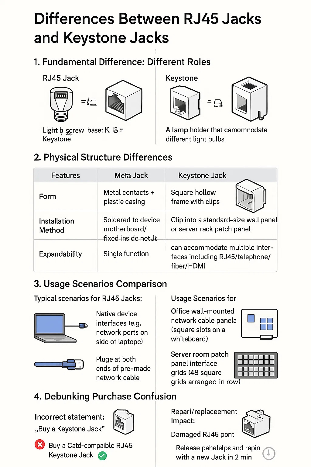الاختلافات بين مقابس RJ45 ومقابس كيستون